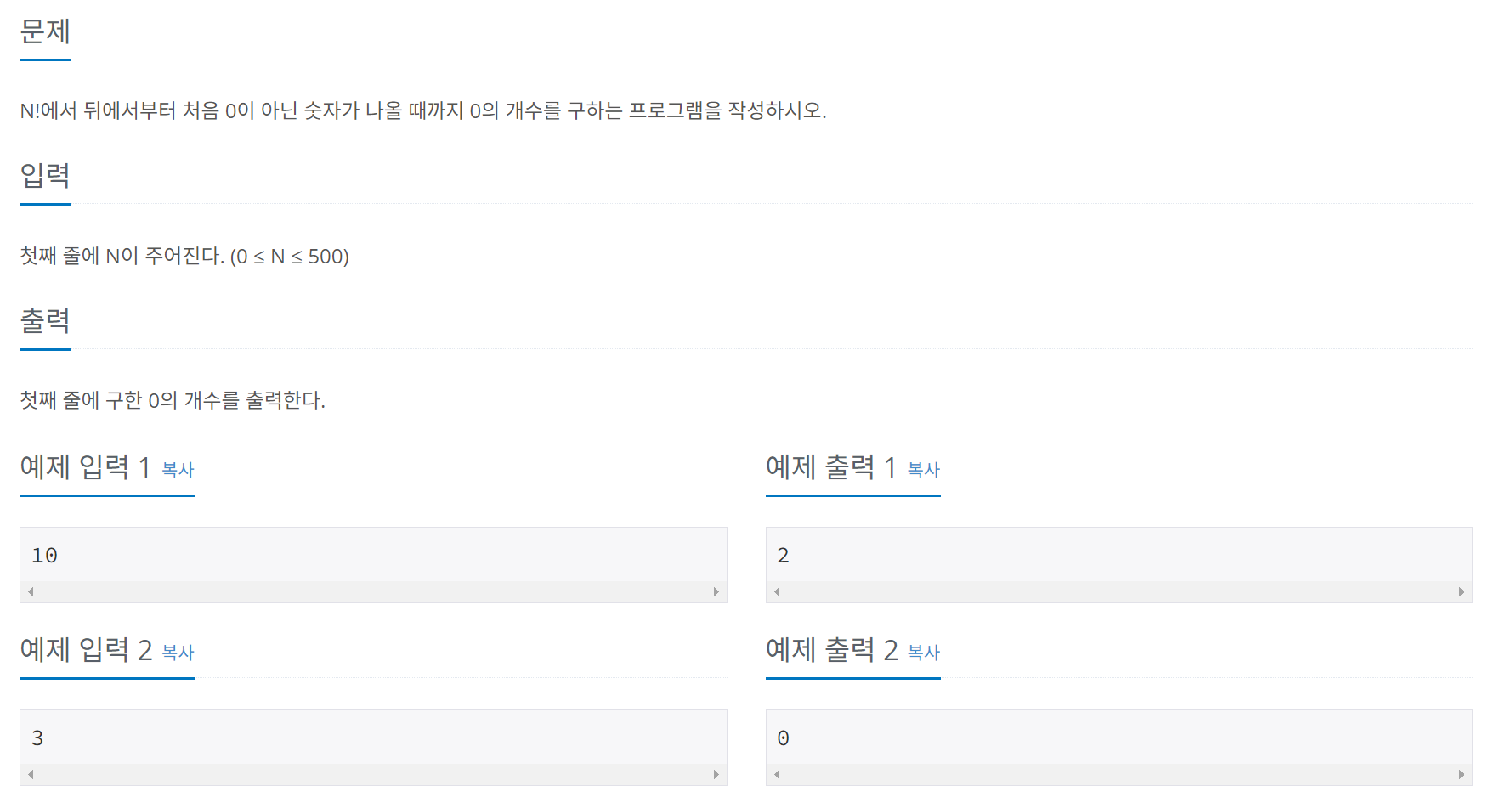 0의 개수도 뒤에서 부터 stirng을 char로 받아 0인지 확인하면 되기 때문에 어렵지 않았다.