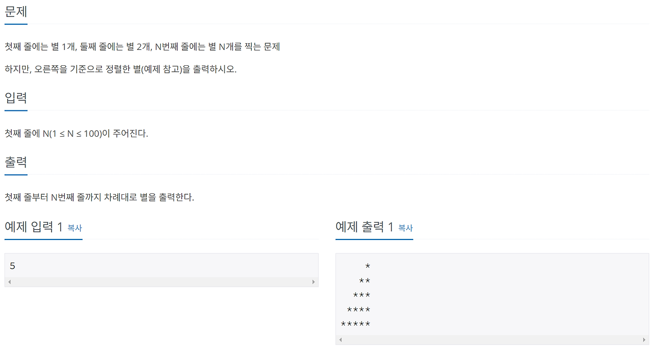 큰 for문 안에 공백을 출력하는 for문과 별을 출력하는 for문을 배치했다.