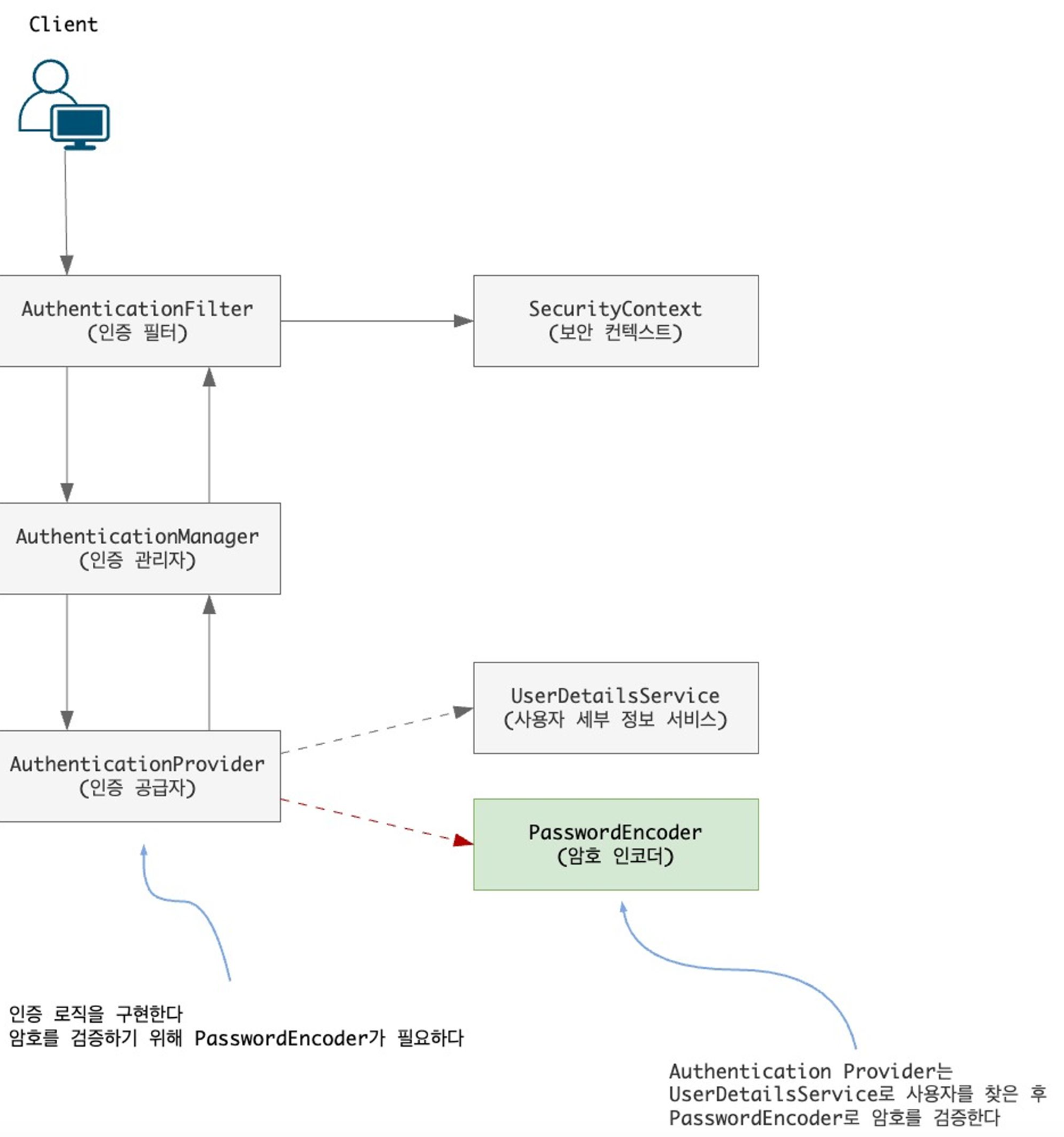 AuthenticationProvider가 PasswordEncoder에 암호 검증에 대한 책임을 위임함